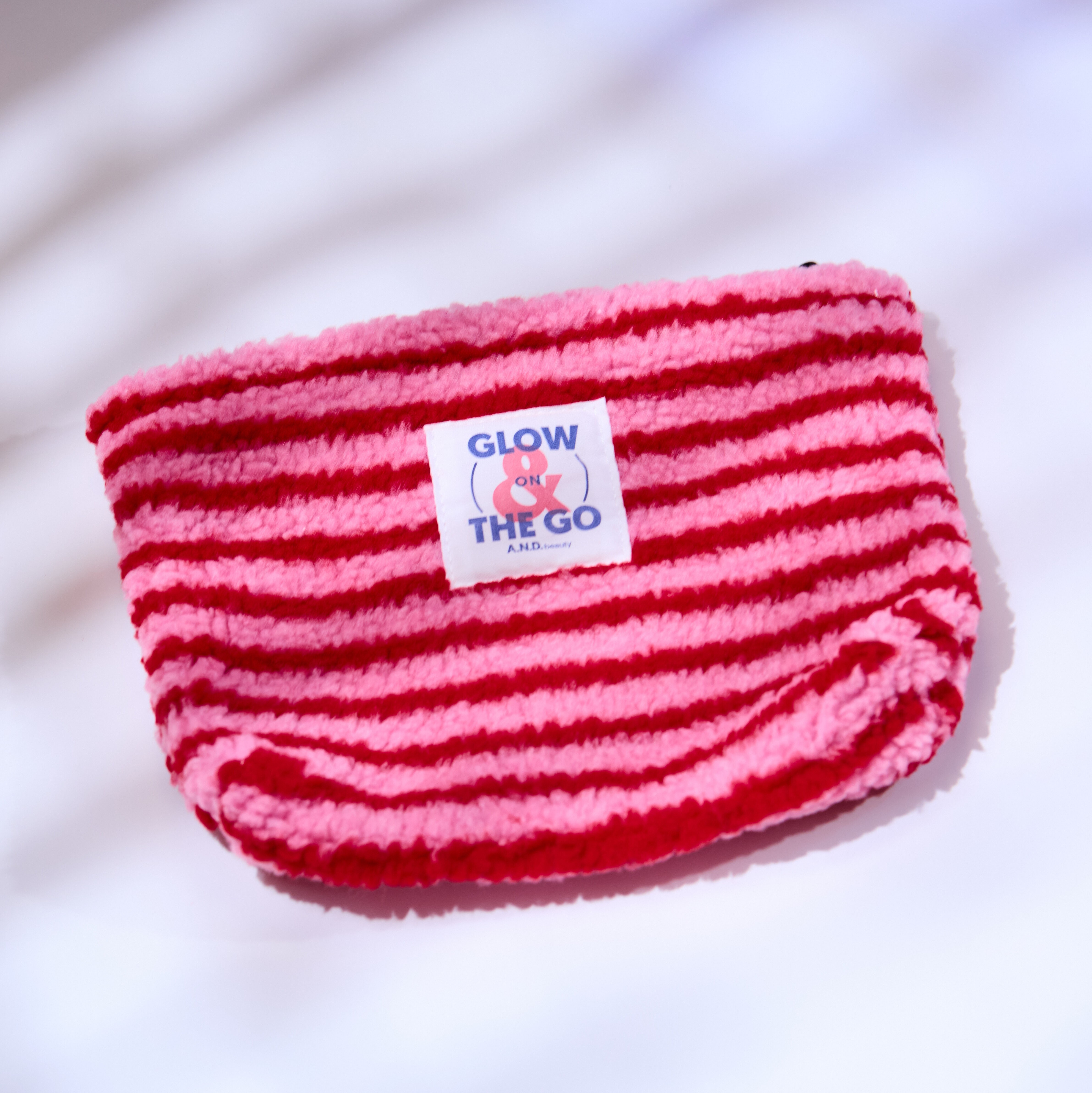 Unsere Fluffy Bag ist die erste A.N.D. beauty Kosmetiktasche – exklusiv, limitiert, iconic. Sie ist mehr als nur ein Organizer – ein Piece mit Personality. Das rosa-rote Streifen-Design, der flauschig-softe Touch und das Glow on the go-Patch machen sie zum perfekten Mix aus cute und confident.